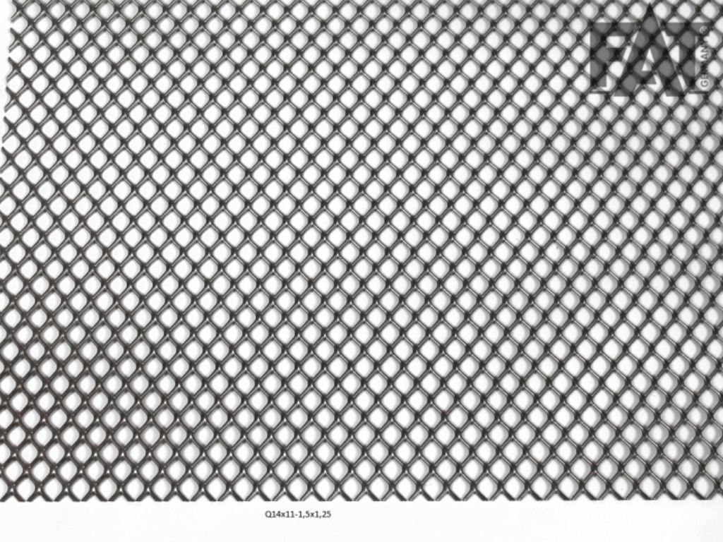 Lautsprecher-Streckmetallgitter 305 mm x 245 mm Quadratmasche Q14 x 11 - 1,5 x 1,25 mm für PA-Boxen.